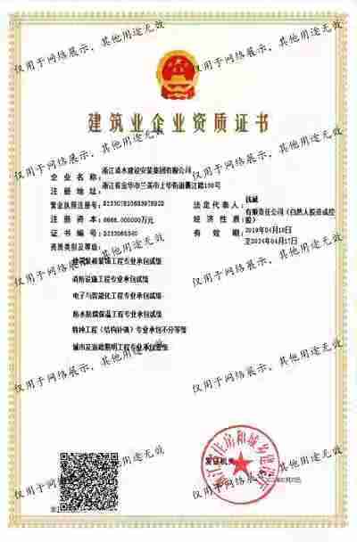 浙江清水建設(shè)安裝集團(tuán)有限公司成立于2013年,注冊(cè)資金6688萬元。集團(tuán)具有消防設(shè)施工程專業(yè)承包壹級(jí)、城市與道路照明專業(yè)承包壹級(jí)、電子與智能化專業(yè)承包壹級(jí)、建筑裝飾裝修專業(yè)承包貳級(jí)、防水防腐保溫專業(yè)承包貳級(jí)、市政工程施工總承包貳級(jí)、機(jī)電工程施工總承包貳級(jí)、建筑工程施工總承包貳級(jí)、電力工程施工總承包貳級(jí)、機(jī)電工程專業(yè)承包貳級(jí)、環(huán)保工程專業(yè)承包貳級(jí)、古建筑工程專業(yè)承包貳級(jí)、特種工程結(jié)構(gòu)補(bǔ)強(qiáng)專業(yè)承包、建筑施工勞務(wù)作業(yè)專業(yè)承包(憑建筑業(yè)企業(yè)資質(zhì)證書經(jīng)營